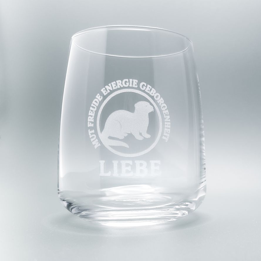Der Otter auf diesem Glas ist mehr als nur ein Tier – er ist ein kleiner Beschützer des Lebens. Als Krafttier steht der Otter für Lebenslust, Vertrauen und innere Stärke, sich dem Fluss des Lebens hinzugeben. Wenn du aus diesem Glas trinkst, begleitet dich der Otter mit seiner fröhlichen Energie.