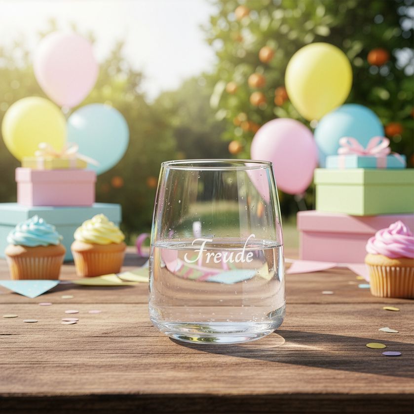 Wo Freude ihren Platz findet, öffnet sich das Herz und der Geist wird leicht. Sie zeigt sich als Erfüllung, wenn wir im Einklang mit uns selbst sind, und schenkt Inspiration wie ein innerer Funke, das Neue erschafft, Impulse weckt und uns beflügelt. Freude nährt Zufriedenheit – eine ruhige Basis, die Geborgenheit schenkt und unser Herz mit Lebenslust füllt. Aus ihr erwächst Begeisterung, die uns das Leben mit leuchtenden Augen erfahren lässt. Freude ist Liebe in Bewegung, sie verbindet uns mit unserem inneren Kind, das spontan und frei lacht, ohne nachzudenken, im Vertrauen ins Leben. In ihr werden Visionen lebendig, getragen von Leichtigkeit und Offenheit. Dieses Glas mit der Gravur Freude lädt dazu ein, diese Schwingung bewusst ins Wasser zu tragen – damit jeder Schluck dich erinnert, das Leben mit Begeisterung, Liebe und Dankbarkeit zu feiern.